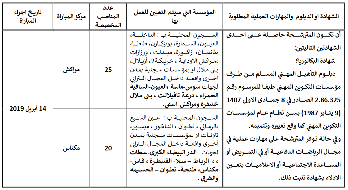 - تاريخ أخر أجل لإيداع الملف : 27 مارس 2019