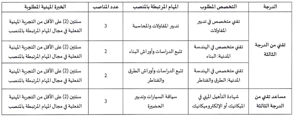 – أن يتوفر مترشحو منصب مساعد تقني من الدرجة الثالثة على رخصة السياقة من نوع ب.